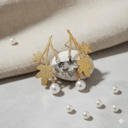 Product: Autumn leaves & pearl drop earrings