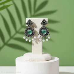 Product: Oxidised silver toned and green stone drop earrings